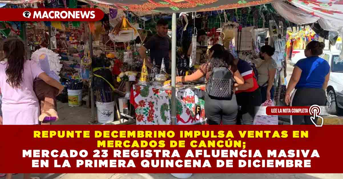 Redacción Macronews.- Con la llegada de los aguinaldos y el pago de la primera quincena de diciembre, los tianguis y mercados populares de Cancún registran un notable incremento en sus ventas, principalmente de artículos navideños, en una temporada clave para el comercio local previo a las celebraciones de Navidad.