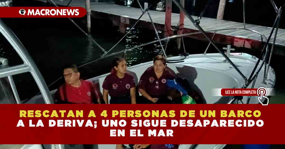 RESCATAN A 4 PERSONAS DE UN BARCO A LA DERIVA; UNO SIGUE DESAPARECIDO EN EL MAR