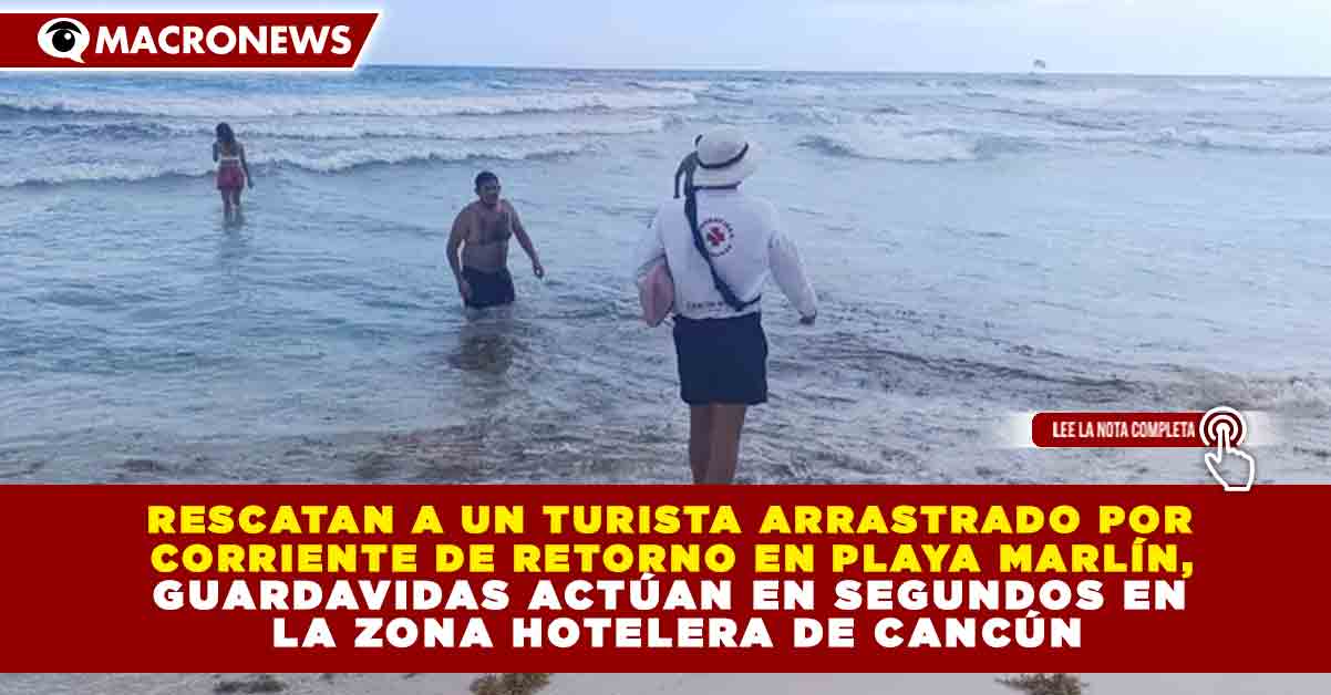Redacción Macronews.- Elementos de Protección Civil Cancún realizaron el rescate oportuno de un bañista que fue arrastrado mar adentro por una corriente de retorno en Playa Marlín, ubicada en el kilómetro 13.5 de la zona hotelera de Cancún.