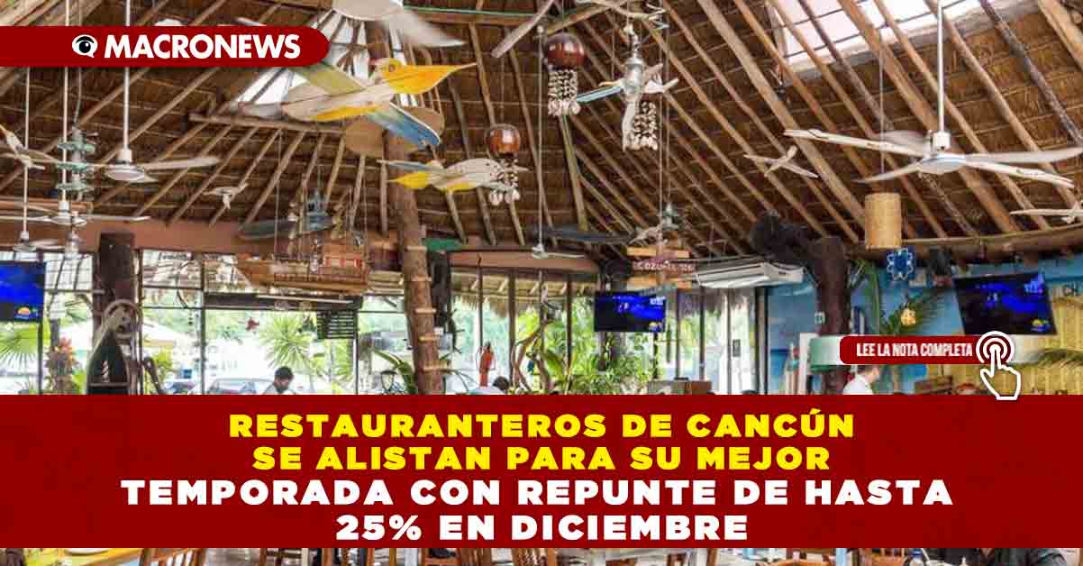 CANCÚN, QRoo, 9 de noviembre de 2025.- El sector restaurantero se prepara para la que consideran su mejor temporada del año, que iniciará con el fin de semana largo por el aniversario de la Revolución mexicana y se extenderá hasta diciembre con posadas, cenas navideñas y celebraciones de Año Nuevo. Marcy Bezaleel Pacheco, comisionado de turismo gastronómico de la Cámara Nacional de la Industria de Restaurantes y Alimentos Condimentados (Canirac) en Quintana Roo, explicó que los establecimientos ya registran expectativas a la espera de la llegada masiva de turistas nacionales e internacionales.