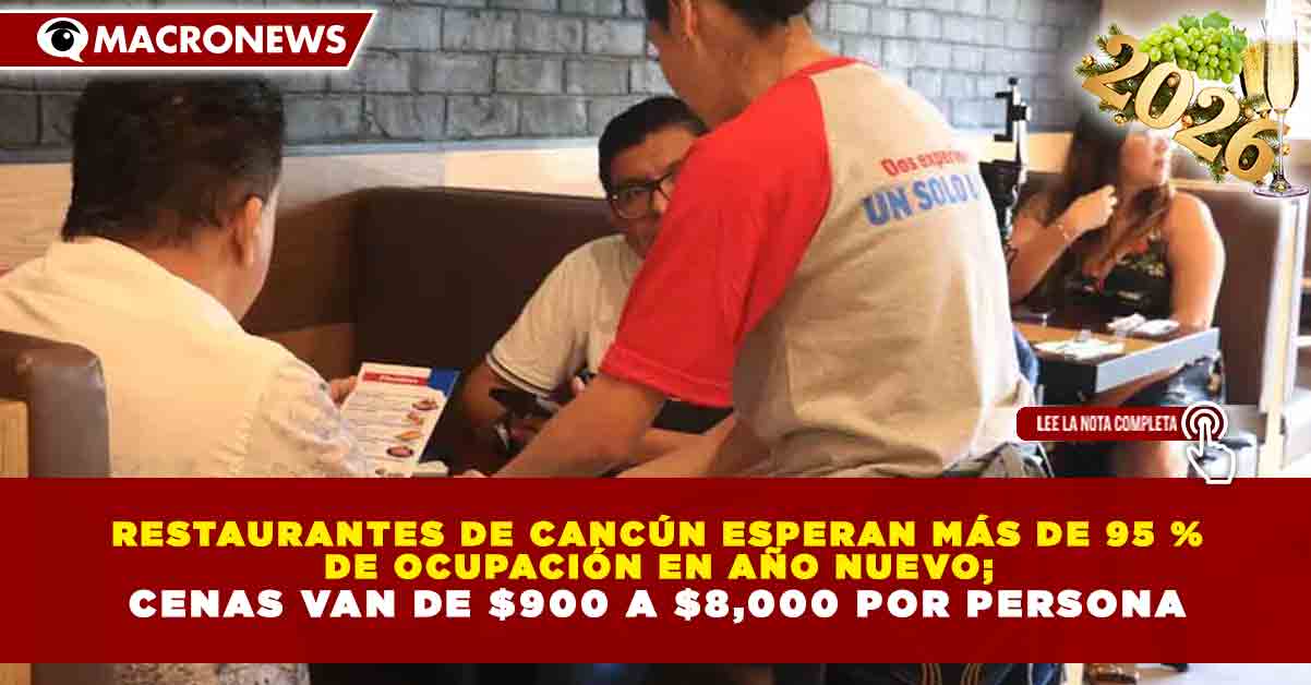 Redacción Macronews.- El sector restaurantero prevé una ocupación superior al 95 % durante los festejos de Año Nuevo, impulsada por la alta demanda registrada tras la Nochebuena, cuando se reportaron muy buenas ventas, informó Julio Villarreal Zapata, presidente de la Cámara Nacional de la Industria de Restaurantes y Alimentos Condimentados (Canirac).