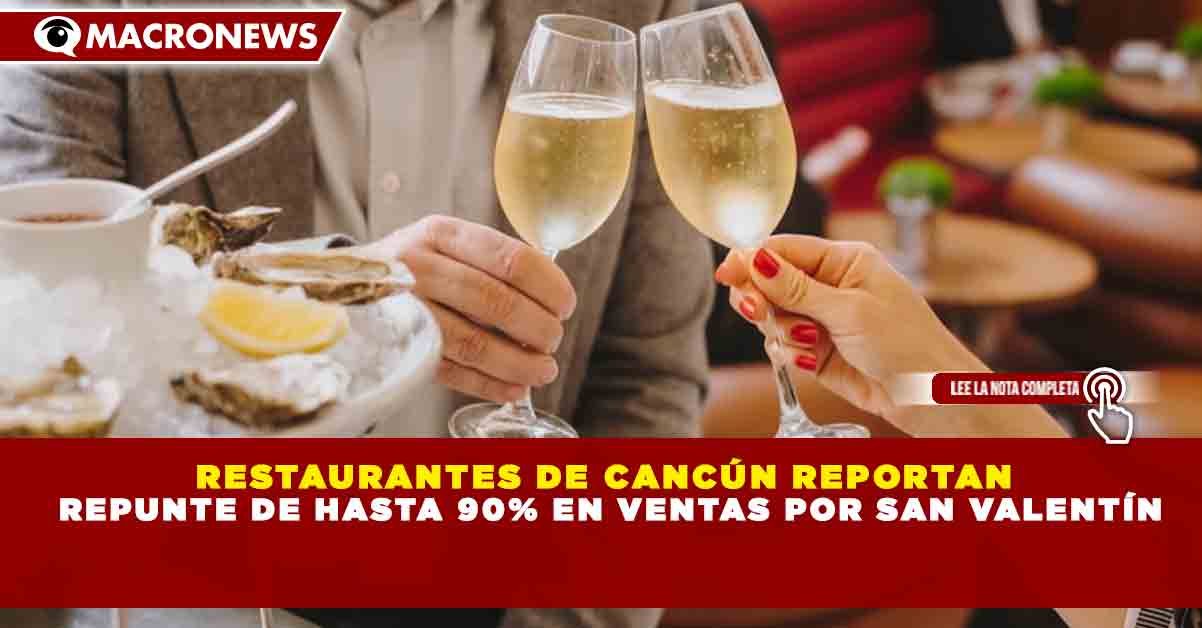 Redacción Macronews.- Restaurantes de Cancún registraron un incremento de hasta 90 por ciento en sus ventas con motivo de las celebraciones por el Día de San Valentín, lo que representó uno de los fines de semana más activos en lo que va del año para el sector gastronómico local.
