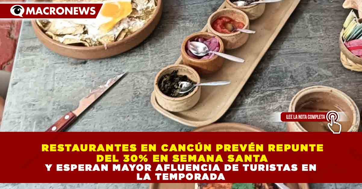 Redacción Macronews.- El sector restaurantero de Cancún prevé un repunte del 30% en el flujo de comensales durante el periodo vacacional de Semana Santa, luego de meses marcados por una baja actividad económica que ha mantenido a los establecimientos operando entre el 40% y 60% de su capacidad.