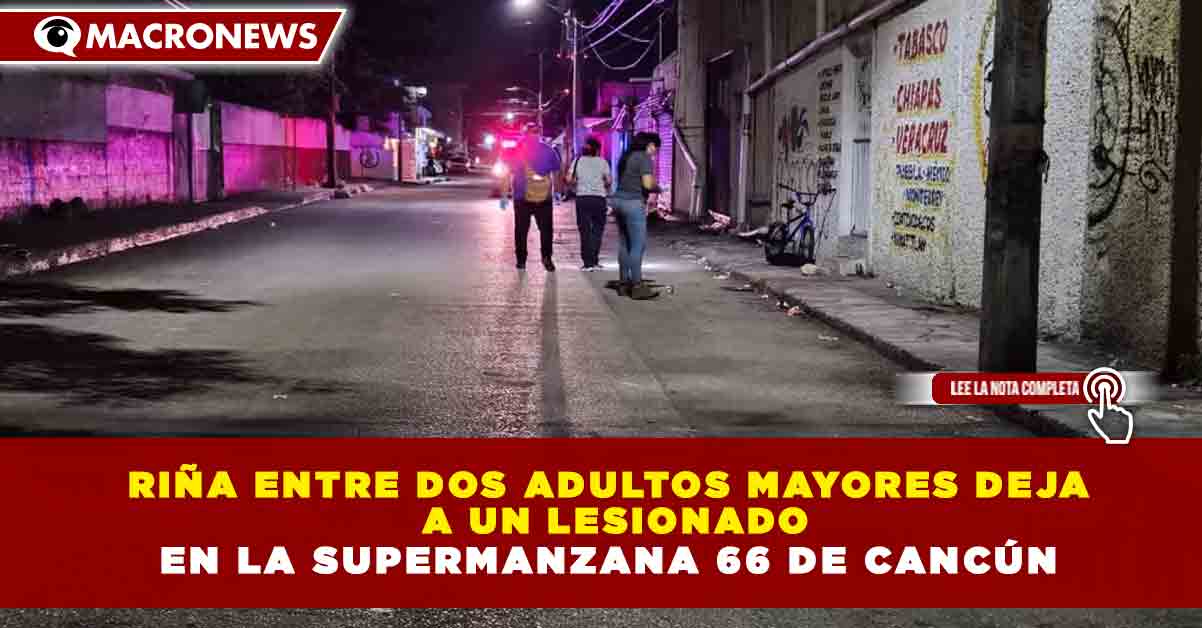 Redacción Macronews.- Una riña entre dos adultos mayores dejó como saldo una persona lesionada en la supermanzana 66 de Cancún, lo que movilizó a cuerpos de emergencia y autoridades durante las últimas horas, de acuerdo con reportes preliminares.