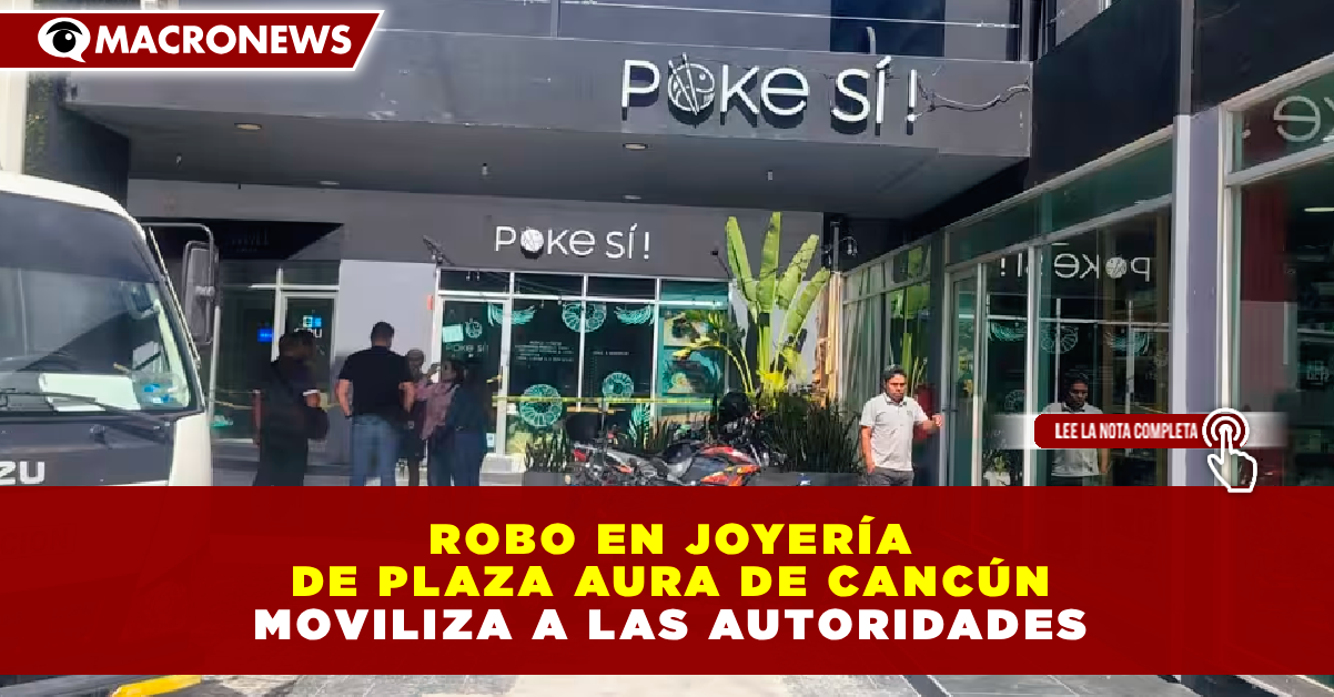 CANCÚN, Q. ROO. – Un cuantioso robo se registró durante las primeras horas de este sábado en una joyería ubicada al interior de Plaza Aura. Según los informes policiales, sujetos desconocidos irrumpieron en el local tras romper los cristales de exhibición, logrando sustraer diversas piezas de alto valor antes de escapar con rumbo desconocido.