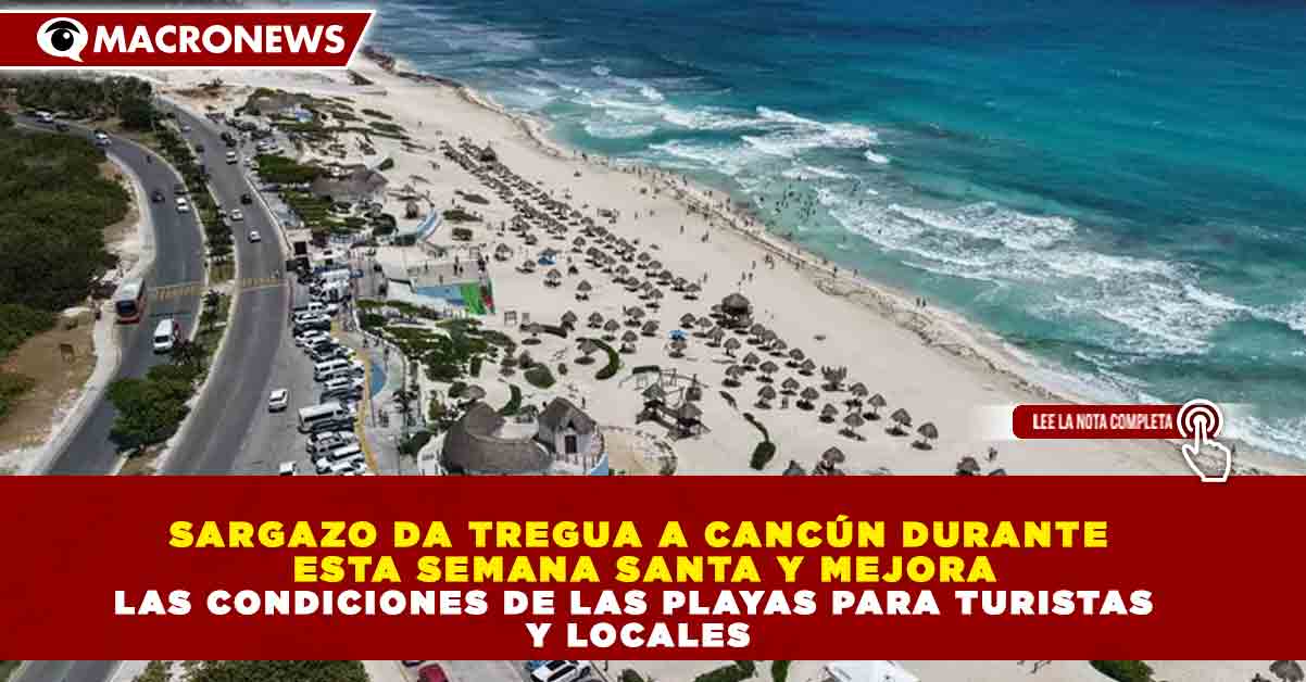Redacción Macronews.- El Caribe mexicano registra una notable disminución del sargazo en plena temporada alta de Semana Santa, con un 50% de sus playas libres de esta alga, de acuerdo con el monitoreo más reciente que mantiene el semáforo en color verde desde Holbox hasta Playa Marlín en Cancún.