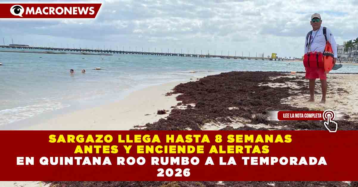 Redacción Macronews.- La llegada anticipada de sargazo a las costas de Quintana Roo, registrada hasta 8 semanas antes de lo habitual, encendió las alertas ambientales y turísticas en el arranque de 2026, ante el riesgo de afectaciones a playas, ecosistemas y actividad económica del Caribe mexicano.