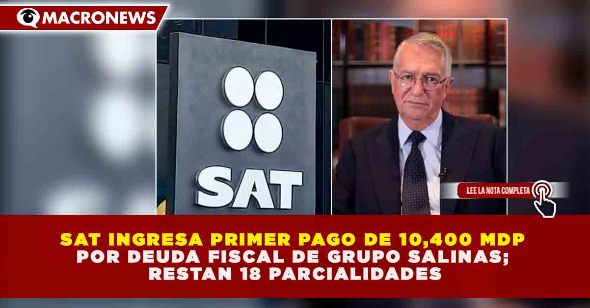 SAT INGRESA PRIMER PAGO DE 10,400 MDP POR DEUDA FISCAL DE GRUPO SALINAS; RESTAN 18 PARCIALIDADES