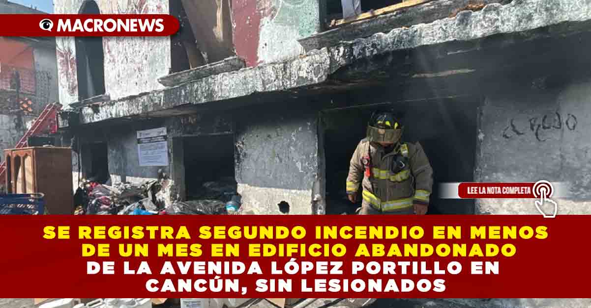 Por segunda vez en menos de un mes, se registró un incendio en un edificio abandonado, localizado en la avenida José López Portillo de Cancún, lo que provocó la llegada de bomberos y personal de Protección Civil local.