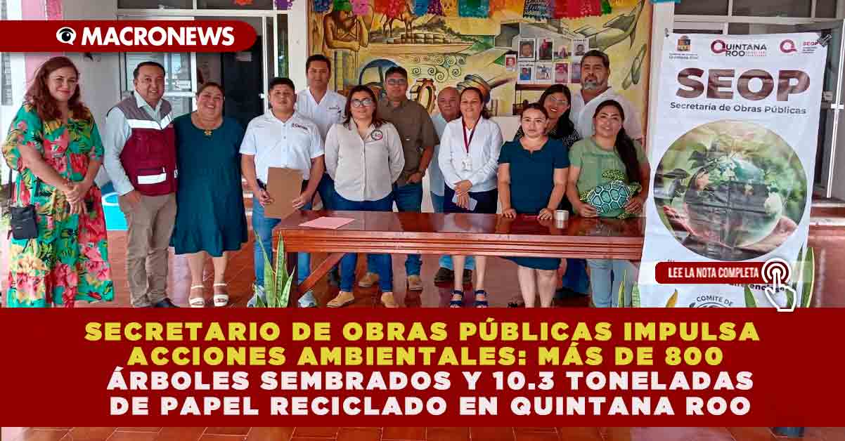SECRETARIO DE OBRAS PÚBLICAS IMPULSA ACCIONES AMBIENTALES: MÁS DE 800 ÁRBOLES SEMBRADOS Y 10.3 TONELADAS DE PAPEL RECICLADO EN QUINTANA ROO