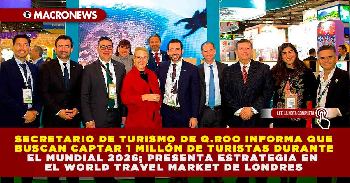 Secretario de Turismo de Q. Roo informa que buscan captar 1 millón de turistas durante el Mundial 2026; presenta estrategia en el World Travel Market de Londres