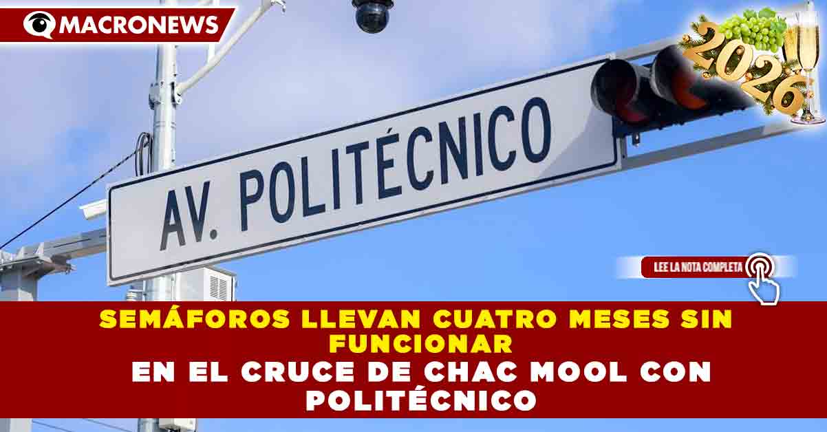 En el cruce de la avenida Chac Mool con la avenida Politécnico se encuentran semáforos instalados que, aunque funcionan, no están en operación adecuada, ya que únicamente destellan luz roja, situación que vecinos de la zona solicitan sea atendida para mejorar la organización del tránsito vehicular.