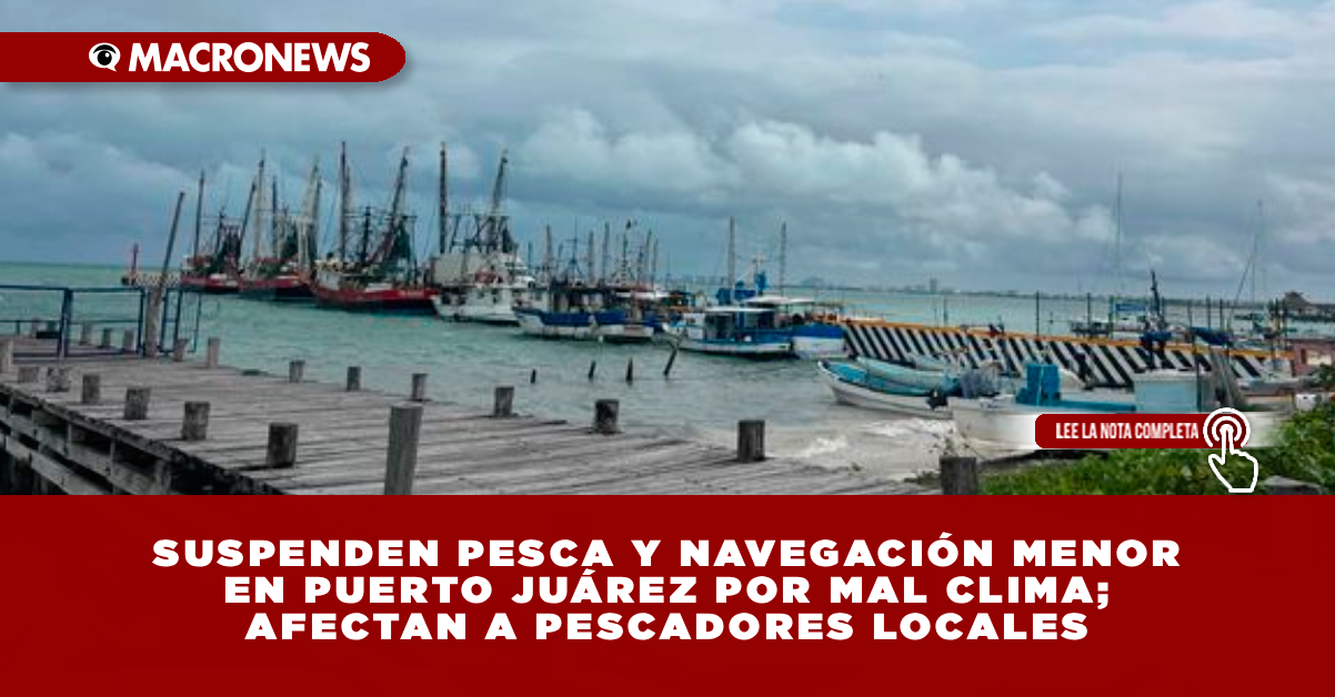 CANCÚN, Q. ROO. Las actividades de pesca y navegación para embarcaciones menores en Puerto Juárez han sido suspendidas debido a las condiciones climatológicas adversas, afectando a cerca de 70 arponeros y pescadores locales.