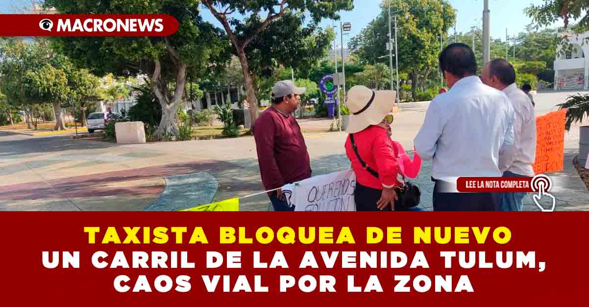 TAXISTA BLOQUEA DE NUEVO UN CARRIL DE LA AVENIDA TULUM, CAOS VIAL POR LA ZONA