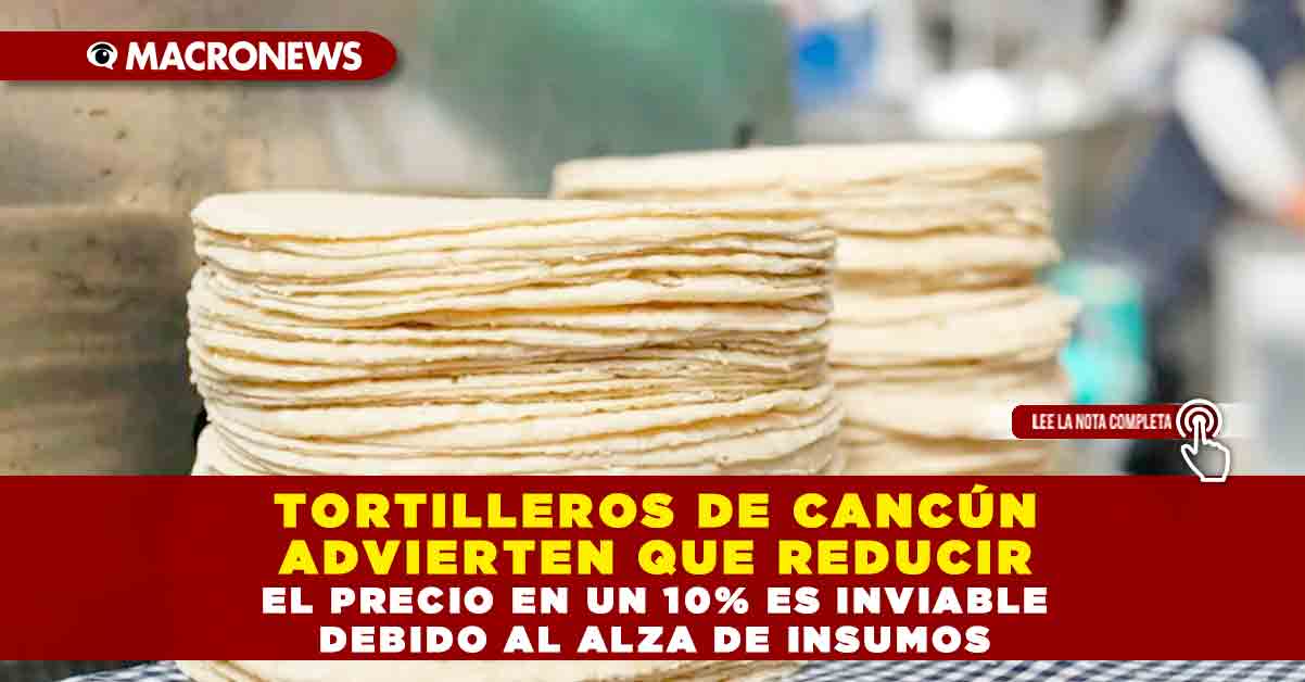 Redacción Macronews por Santiago Ramírez.— El control del precio de la tortilla en Cancún resulta inviable sin implementar una regulación similar en los insumos necesarios para su producción, afirmó Rubén Montalvo, representante de la industria de la masa y la tortilla en la ciudad.