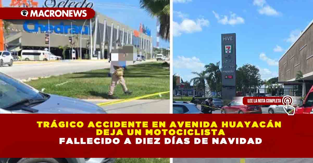 Redacción Macronews.- La mañana de este lunes 15 de diciembre de 2025, un motociclista perdió la vida tras impactar contra un vehículo Renault Kwid color plata en la avenida Huayacán, al sur de Cancún, generando afectaciones temporales al tránsito y una intensa movilización de cuerpos de emergencia.