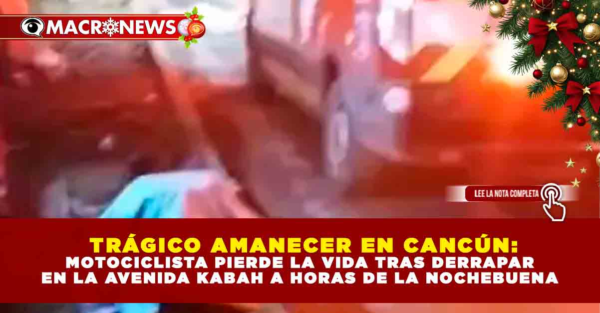Redacción Macronews.- Durante la madrugada de este miércoles, aproximadamente a las 5:00 horas, se registró un fatal accidente de tránsito sobre la avenida Kabah, a la altura de la Supermanzana 221, donde un joven motociclista perdió la vida tras un fuerte impacto. El siniestro ocurrió específicamente en el cruce con la avenida 20 de Noviembre, cuando el conductor, que transitaba presuntamente a exceso de velocidad en dirección hacia la avenida Niños Héroes, perdió el control de su unidad, una motocicleta marca Italika de color azul con placas 18USB1.