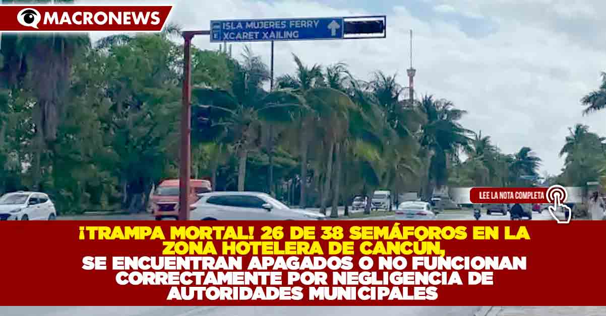 ¡TRAMPA MORTAL! 26 DE 38 SEMÁFOROS EN LA ZONA HOTELERA DE CANCÚN, SE ENCUENTRAN APAGADOS O NO FUNCIONAN CORRECTAMENTE POR NEGLIGENCIA DE AUTORIDADES MUNICIPALES