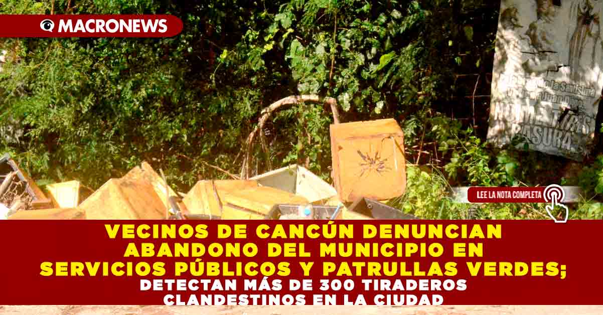 VECINOS DE CANCÚN DENUNCIAN ABANDONO DEL MUNICIPIO EN SERVICIOS PÚBLICOS Y PATRULLAS VERDES; DETECTAN MÁS DE 300 TIRADEROS CLANDESTINOS EN LA CIUDAD