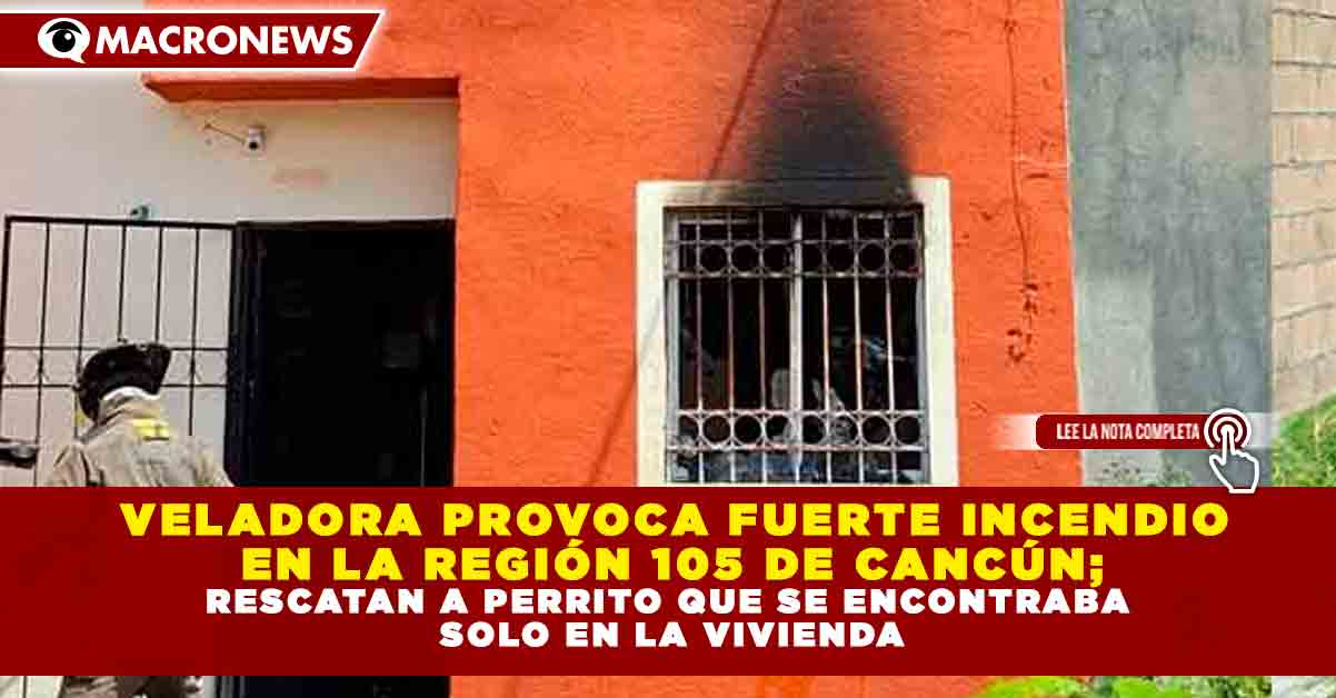 Redacción Macronews.- Una veladora encendida sin supervisión desató un incendio al interior de una vivienda en la Región 105 de Cancún, generando momentos de tensión entre vecinos y movilizando a cuerpos de emergencia, quienes lograron rescatar con vida a un perrito que se encontraba solo en el inmueble.