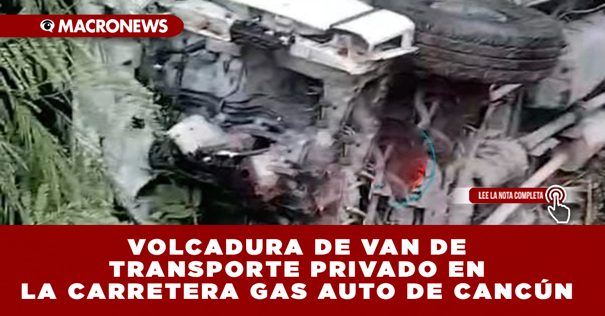 CANCÚN, Q. ROO. Se reportó un accidente de tránsito esta tarde, 8 de diciembre, en la carretera Gas Auto de Cancún, donde una van de transporte privado perdió el control y terminó volcada.