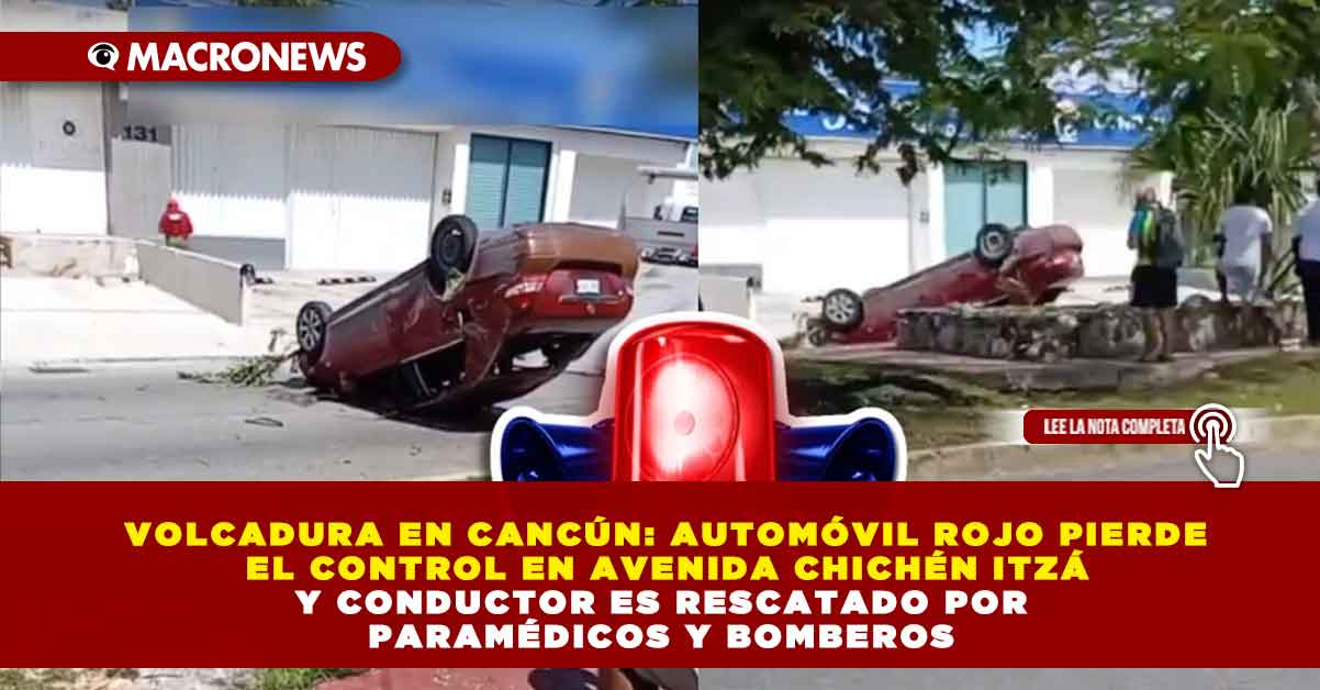 De acuerdo con información preliminar, el hecho ocurrió la mañana de este domingo, cuando un conductor perdió el control de su unidad, un automóvil rojo, y terminó volcándose sobre la avenida Chichén Itzá.