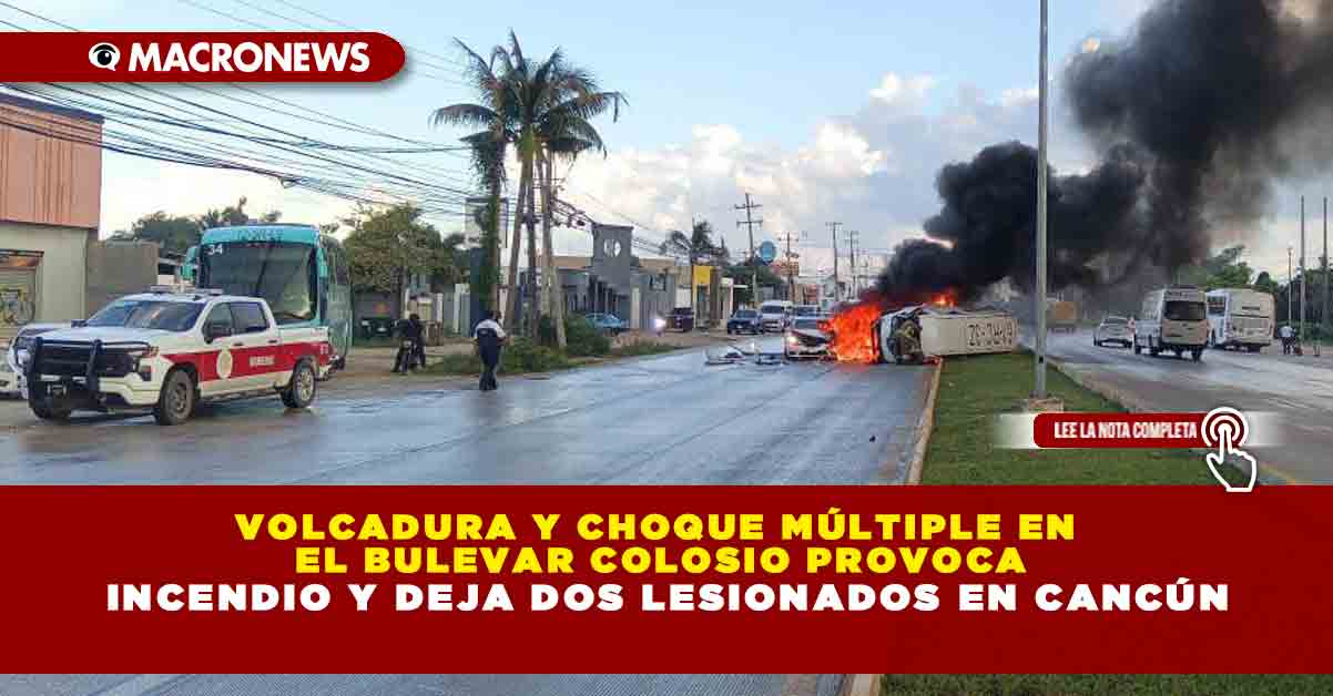 Una fuerte volcadura se registró esta mañana en el bulevar Luis Donaldo Colosio de Cancún, dejando como saldo al menos dos personas lesionadas. El percance involucró un choque múltiple entre dos vans de transporte y un taxi de Playa del Carmen, que terminó con una de las unidades envuelta en llamas.
