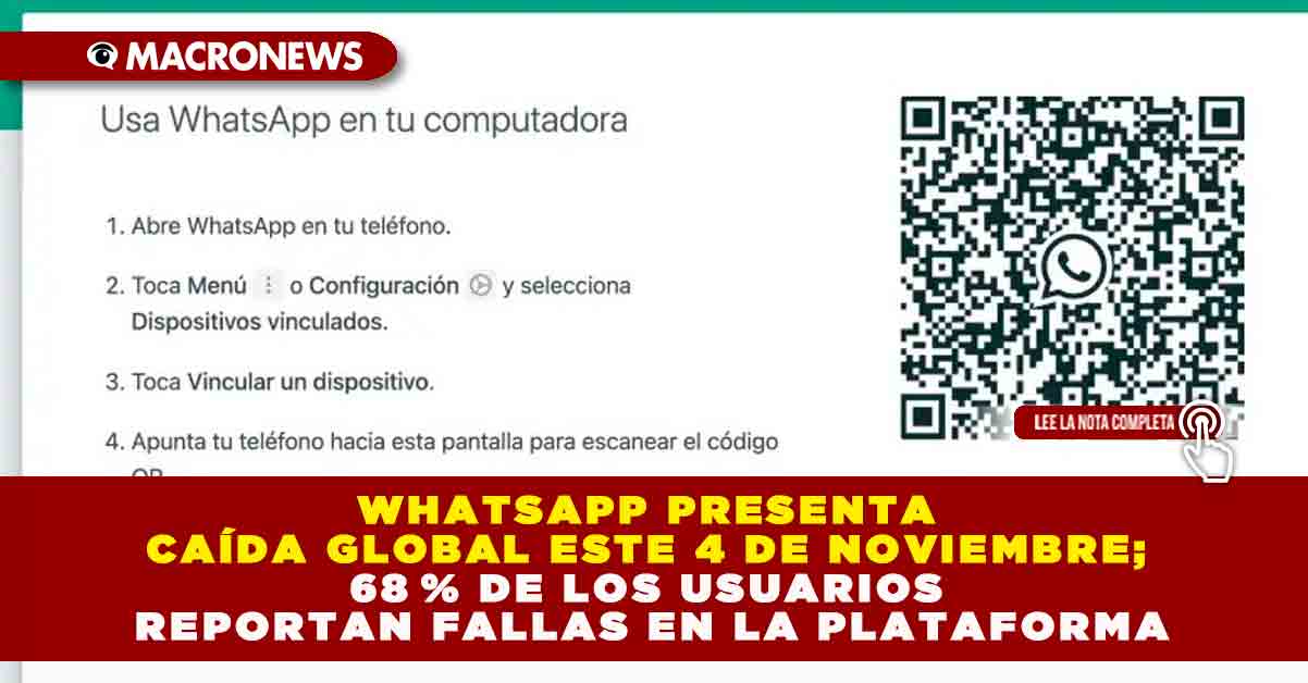 Redacción Macronews.- Este martes 4 de noviembre de 2025, WhatsApp Web, la versión de escritorio de la aplicación de mensajería más utilizada en México, sufrió una caída global que impide enviar y recibir mensajes desde navegadores. La interrupción del servicio comenzó en horas de la mañana y ha generado una ola de reportes en redes sociales, especialmente en la plataforma X, donde el término “WhatsApp Web” se volvió tendencia.