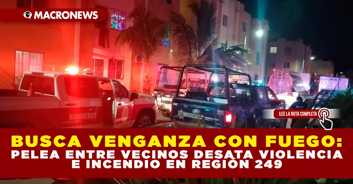 Redacción Macronews.- Un pleito callejero entre dos hombres se convirtió en un grave episodio de violencia que movilizó a cuerpos de emergencia y autoridades durante la noche del domingo en el fraccionamiento Cielo Nuevo, ubicado en la Región 249 de Cancún. Lo que comenzó como una discusión derivada de presuntas rencillas personales escaló hasta provocar un incendio.
