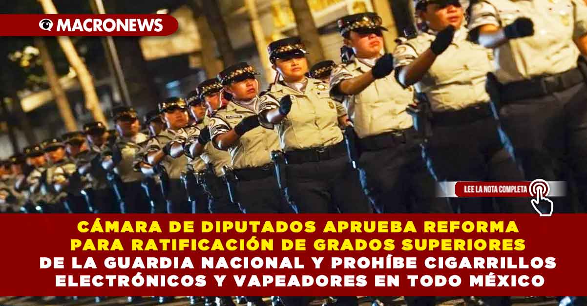 “El Congreso de la Unión, en uso de la facultad que le confiere el artículo 135 de la Constitución Política de los Estados Unidos Mexicanos, y previa aprobación de la mayoría de las honorables Legislaturas de los estados y de la Ciudad de México declara reformados los artículos 76 y 78 de la Constitución Política de los Estados Unidos Mexicanos en materia de ratificación de grados superiores de la Guardia Nacional. Se remite a la Cámara de Senadores para sus efectos constitucionales”, expresó la presidenta de la Mesa Directiva, la panista Kenia López Rabadán.
