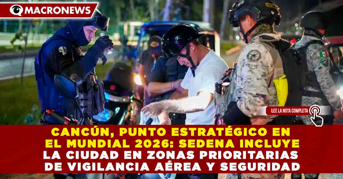 Redacción Macronews.- Cancún ha sido incluido como punto estratégico de entrada del turismo internacional que llegará durante el Mundial de Fútbol 2026, dentro de las zonas prioritarias de vigilancia y protección a cargo de la Secretaría de la Defensa Nacional (Sedena), de acuerdo con un acuerdo publicado en el Diario Oficial de la Federación (DOF).