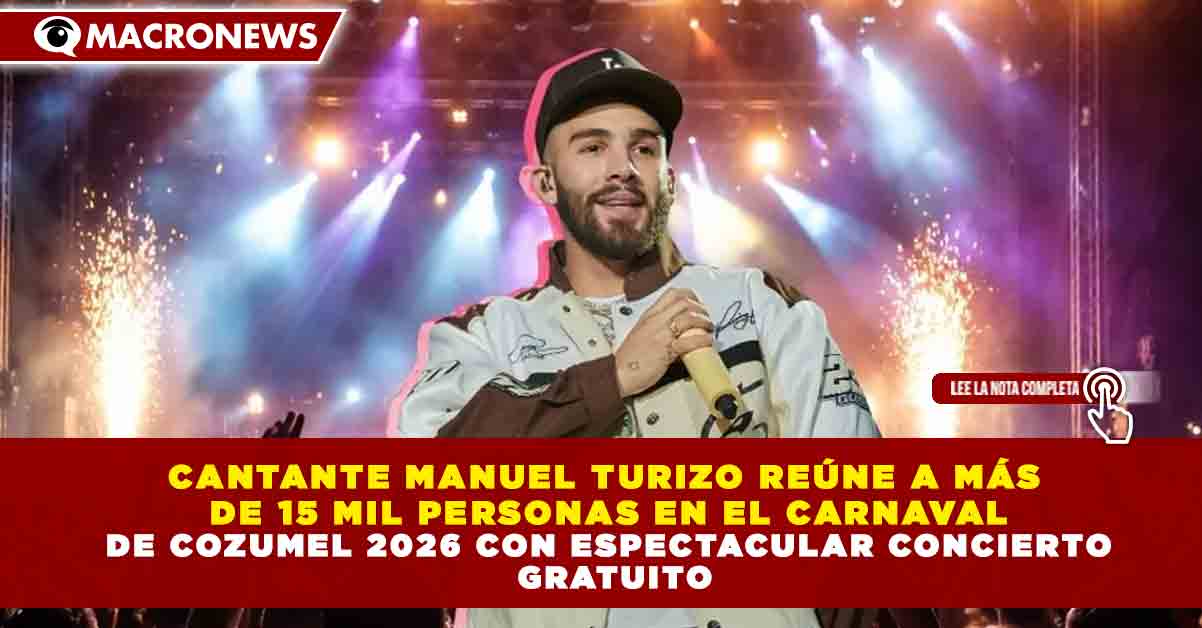 Redacción Macronews.- Más de 15 mil personas se dieron cita para disfrutar del concierto gratuito del cantante colombiano Manuel Turizo, quien protagonizó una de las noches más memorables del Carnaval de Cozumel 2026, consolidando este evento como uno de los más multitudinarios de las festividades en Quintana Roo.