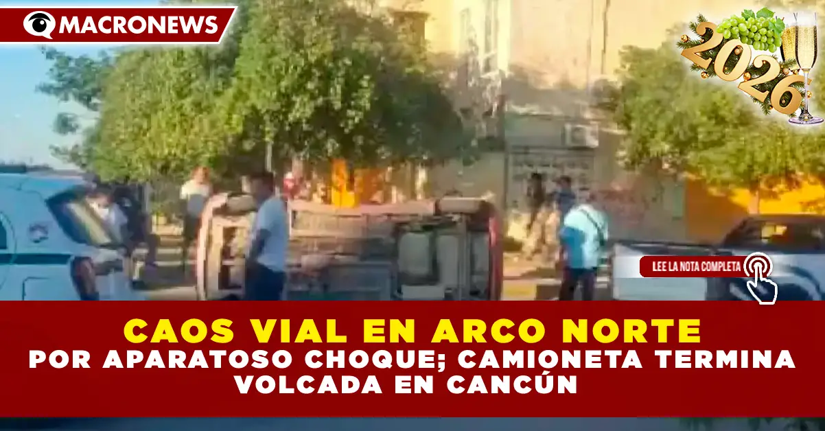 REDACCIÓN MACRONEWS.- La mañana de este miércoles 7 de enero, la movilidad en la zona de Arco Norte se vio severamente afectada tras registrarse una aparatosa volcadura que generó intenso tráfico vial. El incidente ocurrió específicamente sobre la avenida Obsidiana, en el tramo comprendido entre las avenidas Isla Haití e Isla Aruba. Según los primeros reportes, una camioneta terminó volcada sobre la cinta asfáltica tras colisionar con un segundo vehículo particular.