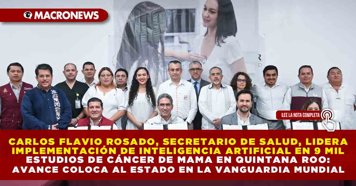 Redacción Macronews.- Quintana Roo se convierte en el primer estado de Latinoamérica en aplicar inteligencia artificial para la detección temprana del cáncer de mama, gracias al convenio firmado entre la Secretaría de Salud estatal, encabezada por Carlos Flavio Rosado, y la empresa Roche México. La iniciativa incluye la donación histórica de 9 mil estudios, triplicando la meta inicial de 3 mil, lo que permite eliminar el rezago en mastografías y posicionar al estado como referente internacional en diagnóstico oportuno.