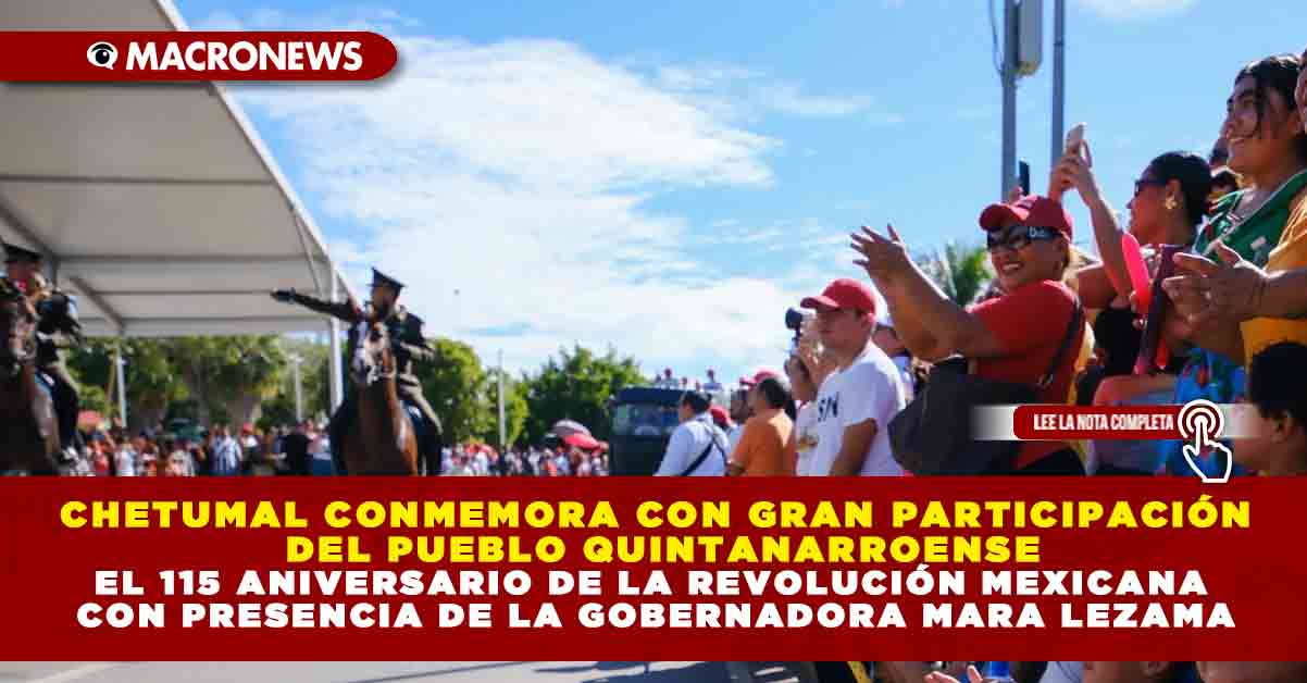 Chetumal.- Con una gran participación ciudadana y un ambiente lleno de orgullo revolucionario, se realizó en la capital del estado el desfile cívico-deportivo del 20 de noviembre, que reunió a más de 9 mil personas entre contingentes y público asistente a lo largo del bulevar Bahía, con motivo del 115 aniversario del inicio de la Revolución Mexicana.