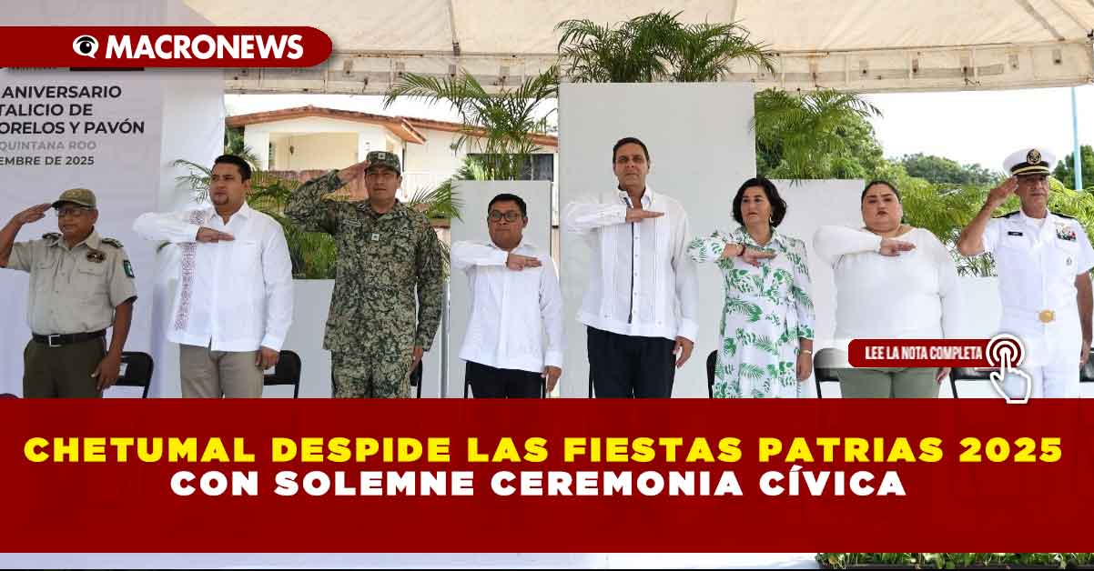 Chetumal.- Con una solemne ceremonia cívica al pie del Monumento a la Patria, culminaron las actividades de las Fiestas Patrias 2025 en la capital del estado.