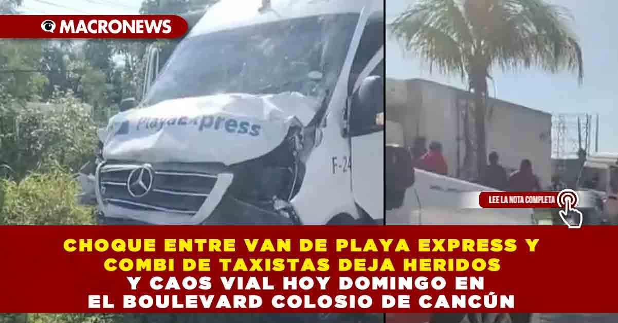 Un brutal accidente se registró la mañana de este domingo, 16 de noviembre, en el Boulevard Luis Donaldo Colosio de Cancún, en donde una Van de Playa Express chocó con una combi del Sindicato de Taxistas Andrés Quintana Roo, con pasajeros abordo.
