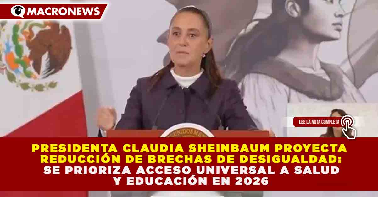 CLAUDIA SHEINBAUM PROYECTA REDUCCIÓN DE BRECHAS DE DESIGUALDAD: SE PRIORIZA ACCESO UNIVERSAL A SALUD Y EDUCACIÓN EN 2026