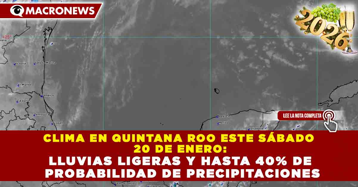Redacción Macronews.- Para este sábado, se prevé la presencia de lluvias ligeras en diversas zonas de Quintana Roo, con una probabilidad de precipitaciones de entre 20% y 40%, debido a la entrada de humedad proveniente del Mar Caribe y condiciones atmosféricas inestables en la región.