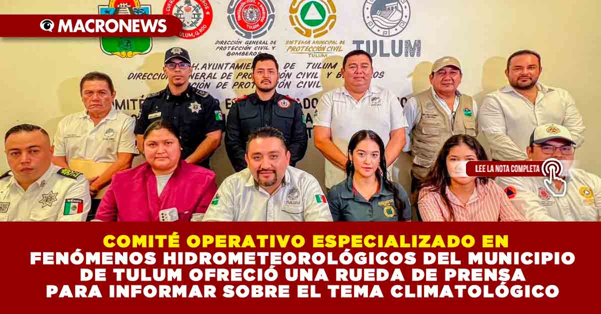 COMITÉ OPERATIVO ESPECIALIZADO EN FENÓMENOS HIDROMETEOROLÓGICOS DEL MUNICIPIO DE TULUM OFRECIÓ UNA RUEDA DE PRENSA PARA INFORMAR SOBRE EL TEMA CLIMATOLÓGICO