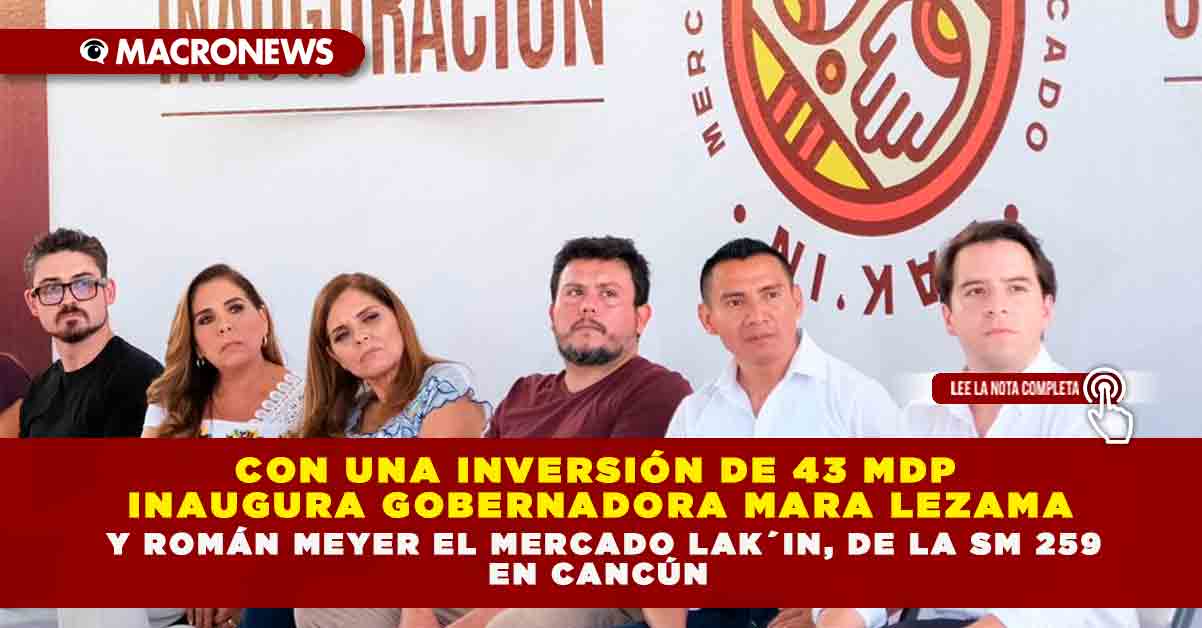Cancún.- La gobernadora Mara Lezama Espinosa y el secretario de Desarrollo Agrario, Territorial y Urbano (SEDATU) Román Meyer Falcón, entregaron a la comunidad el Mercado Lak´in, en la supermanzana 259, mismo que gestionó y dio inicio cuando fue presidenta municipal de Benito Juárez.