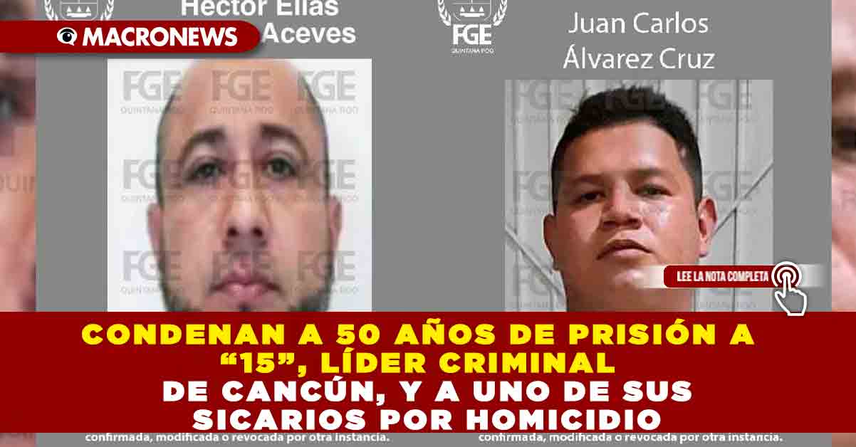 CONDENAN A 50 AÑOS DE PRISIÓN A “15”, LÍDER CRIMINAL DE CANCÚN, Y A UNO DE SUS SICARIOS POR HOMICIDIO