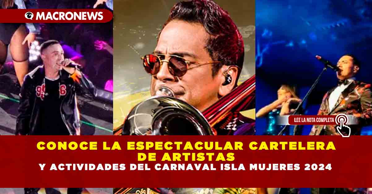 De acuerdo a la cartelera de artistas, se presentarán en el Carnaval de Isla Mujeres 2024 Vielka Valenzuela y Pee Wee como reyes del espectáculo, también estará el show cómico e imitador de Pierre David, Alex Lobos y su banda, la Sonora Dinamita y la presentación estelar del salsero Alberto Barros.
