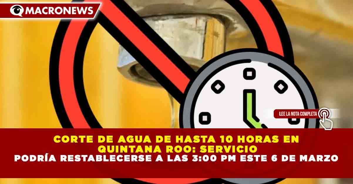 Redacción Macronews.- Habitantes de diversas zonas de Quintana Roo amanecieron este viernes 6 de marzo de 2026 sin suministro de agua potable debido a un corte programado que podría extenderse hasta por 10 horas, informó la Comisión de Agua Potable y Alcantarillado de Quintana Roo, tras anunciar trabajos de interconexión en la red hidráulica.