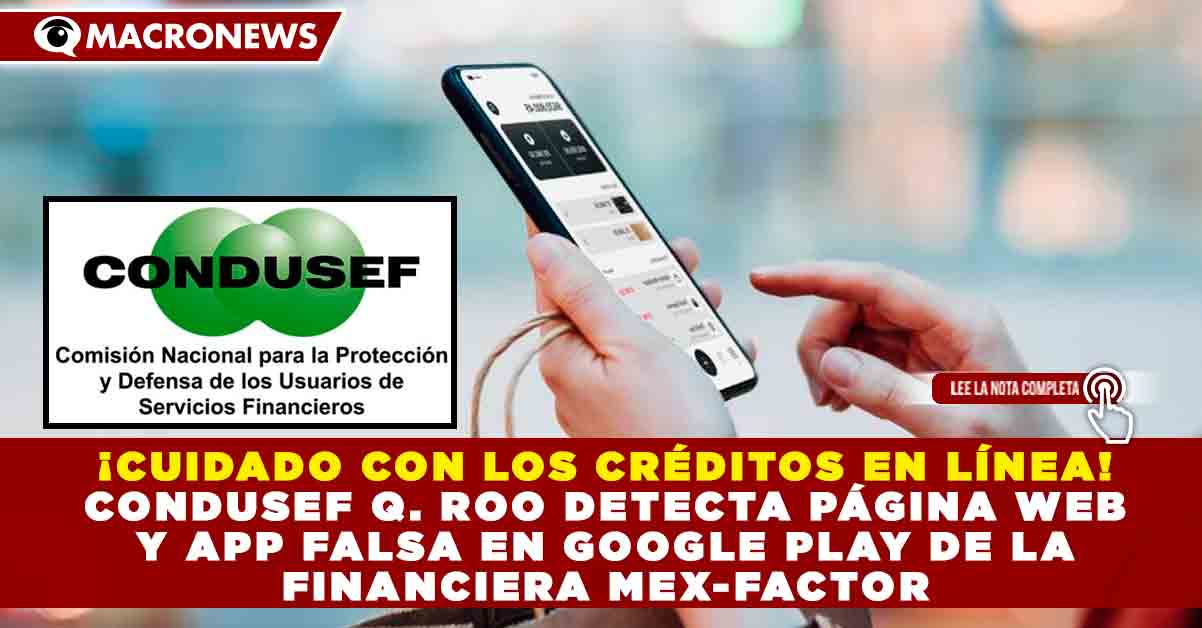 Redacción Macronews por Renán Moguel.- La Comisión Nacional para la Protección y Defensa de los Usuarios de Servicios Financieros (Condusef) en Quintana Roo emitió una alerta a la población ante la suplantación de identidad de la institución financiera MEX-FACTOR, S.A. de C.V. Sofom E.N.R., utilizada de manera ilegal en internet para cometer posibles fraudes.