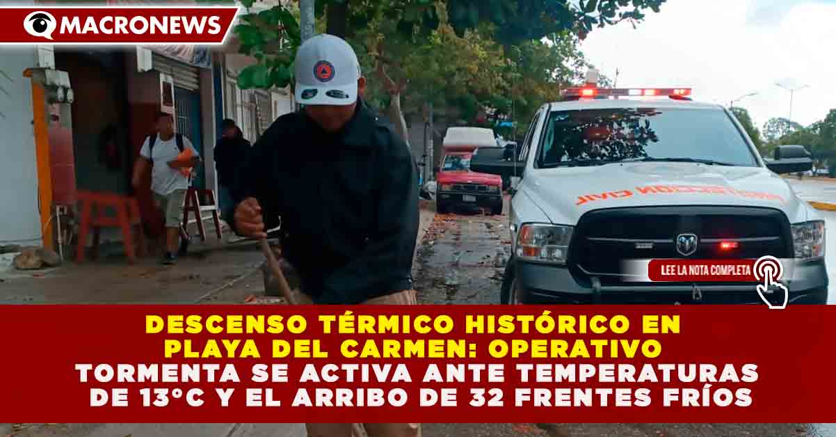DESCENSO TÉRMICO HISTÓRICO EN PLAYA DEL CARMEN: OPERATIVO TORMENTA SE ACTIVA ANTE TEMPERATURAS DE 13°C Y EL ARRIBO DE 32 FRENTES FRÍOS