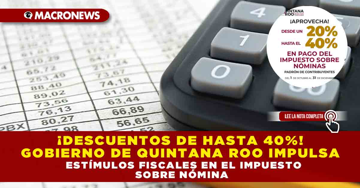Redacción Macronews.- El gobierno del estado de Quintana Roo informó que ha incluido en su listado de estímulos fiscales para 2025 la posibilidad de que los contribuyentes del Impuesto sobre Nómina reciban una reducción de hasta 40 % si cumplen ciertos requisitos, como parte de una estrategia para mejorar la competitividad y formalización laboral en la entidad.