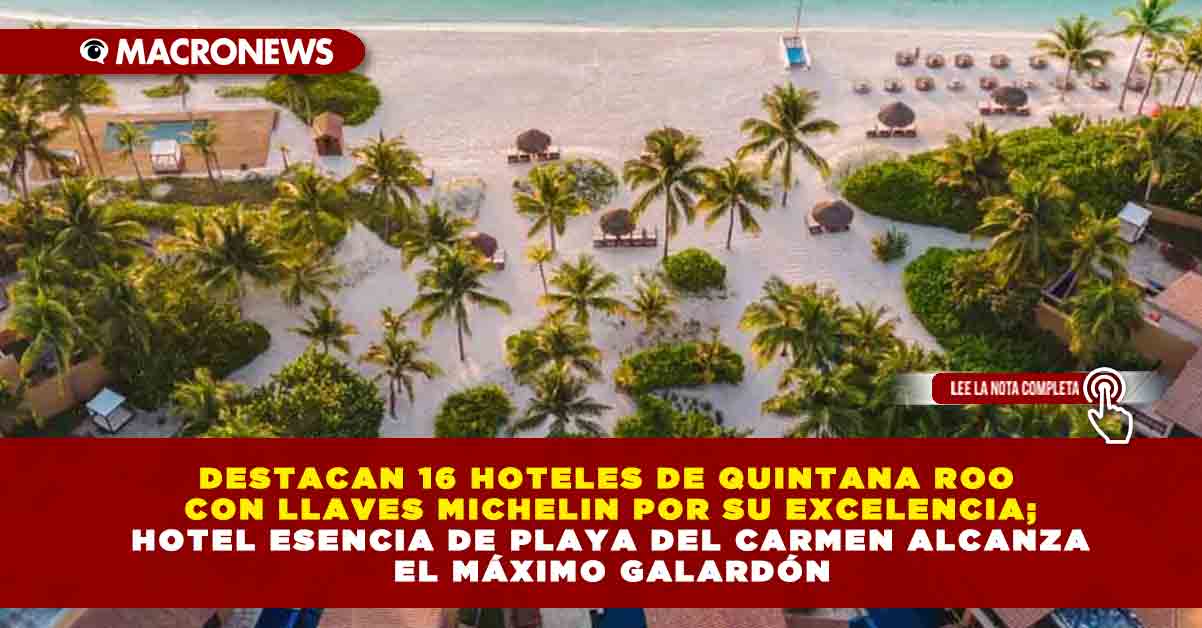 DESTACAN 16 HOTELES DE QUINTANA ROO CON LLAVES MICHELIN POR SU EXCELENCIA; HOTEL ESENCIA DE PLAYA DEL CARMEN ALCANZA EL MÁXIMO GALARDÓN