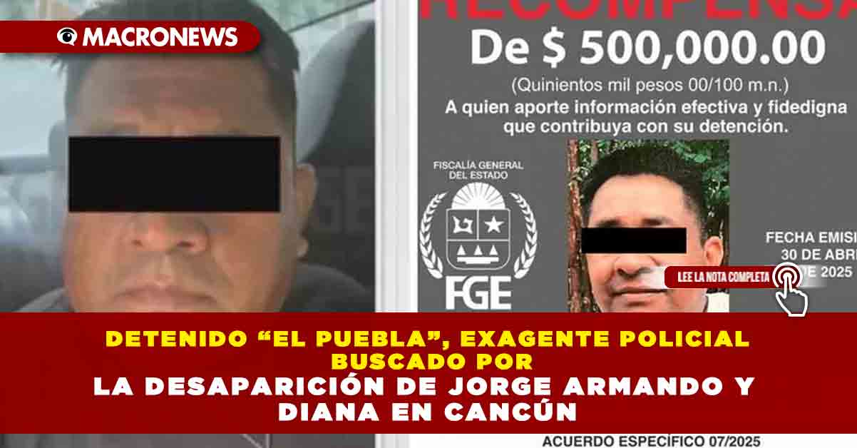 Tras meses de seguimiento, la Fiscalía General del Estado (FGE) cumplió la orden de aprehensión contra Roberto “N”, alias El Puebla, un exagente policial señalado por su probable responsabilidad en la desaparición cometida por particulares de Jorge Armando y Diana, hechos registrados en el municipio de Benito Juárez.