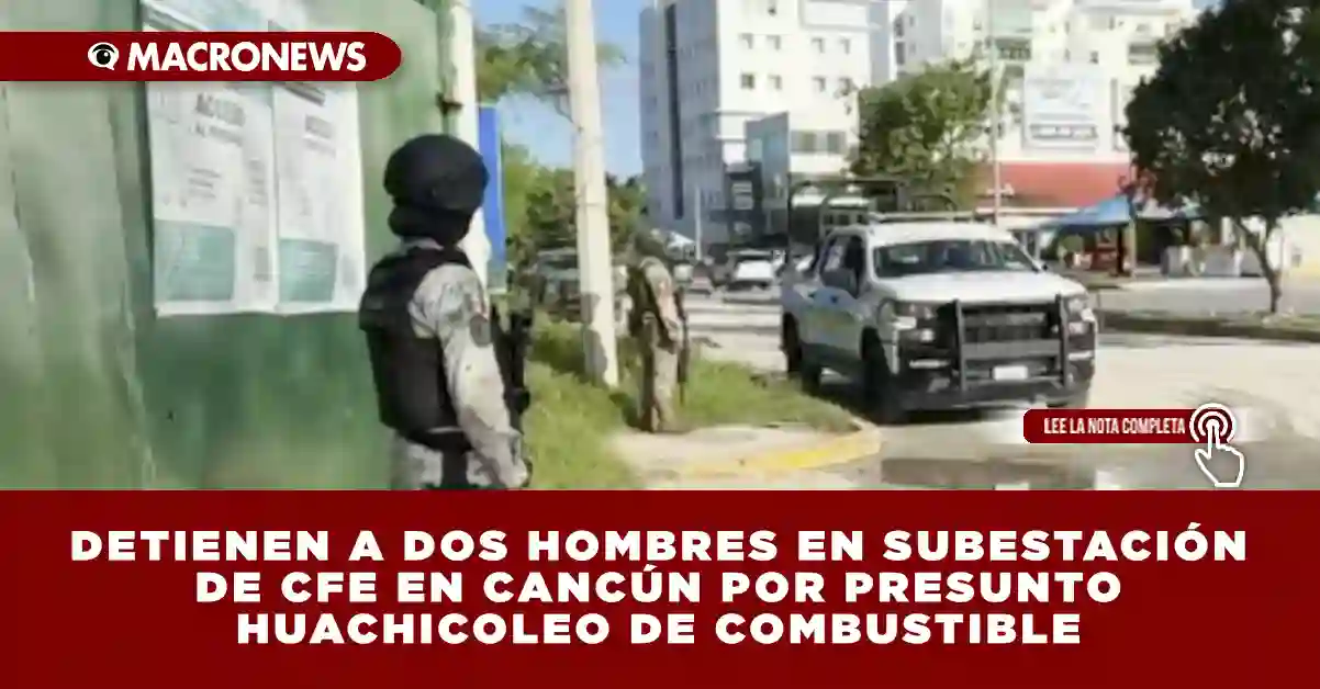 CANCÚN, Q. ROO. Un nuevo incidente de presunto huachicoleo sacudió a la Comisión Federal de Electricidad (CFE) en Cancún, luego de que dos hombres fueran detenidos en la madrugada de este lunes al interior de la Subestación Cancún, ubicada en la Supermanzana 54. Los sujetos fueron sorprendidos con una pipa de gran capacidad con la aparente intención de sustraer combustible.